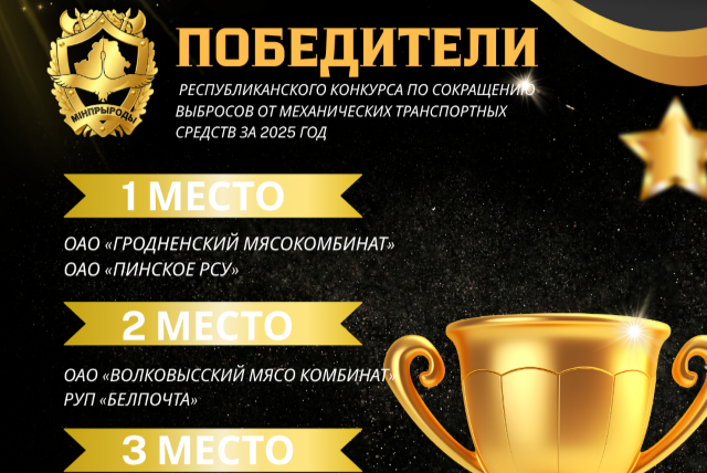Награждение победителей республиканского конкурса по сокращению выбросов от механических транспортных средств за 2025 год состоится в торжественной обстановке в рамках мероприятий, проводимых Министерством природных ресурсов и охраны окружающей среды Республики Беларусь в 2026 году.