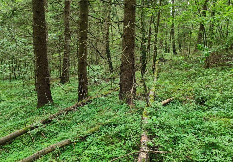 Часть холмов покрыта сосновым лесом. Между холмами встречаются заболоченные западины, поросшие кустарником.
