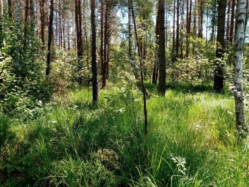 Фон напочвенного покрова образует черника с участием молинии голубой и орляка, часто встречаются брусника, ожика волосистая, щитовник игольчатый, майник двулистный, седмичник европейский, осока черная. Моховой покров хорошо развит, в понижениях отмечаются сфагновые мхи.